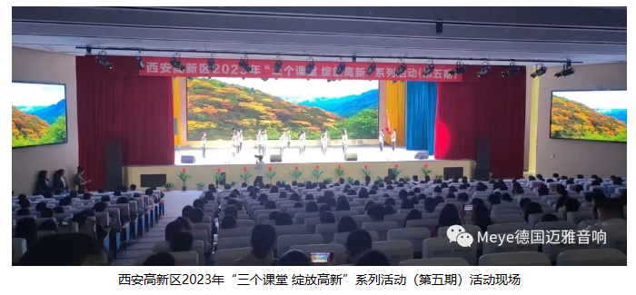 我們看到,此次西安高新區2023年“三個課堂 綻放高新”系列活動(第五期)活動中,孩子們坐在寬敞明亮的多媒體會議廳里面認真學習,聽得津津有味,還有同學們在舞臺上表演節目,作為會議廳音響設備的合作方我們倍感榮幸。據Meye音響技術團隊介紹,此次該多媒體會議廳采用了:雙十線陣GL-220;點聲源ME-15,ME-12;返送同軸CX-15;臺唇音箱CX-208等系列產品。