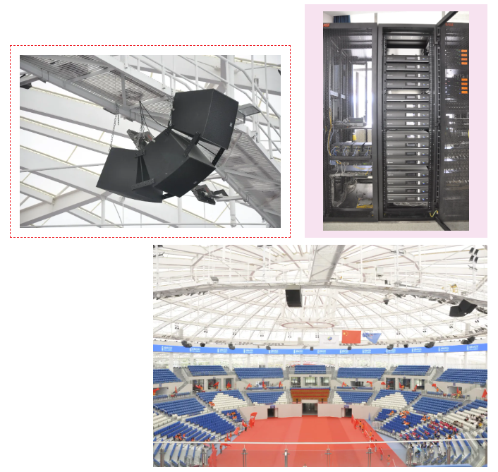 主場館內,EV和DYNACORD聯手呈現了一如既往的良好音質:EVH-1152D作為混響聲場的理想選擇,以其高解析力和均衡的角度覆蓋控制,為場地提供了優異的語言清晰度和醇美音質,讓在場的每位觀眾和運動員都能及時接收到信息,在一些應用場景中對于音樂播放也顯得游刃有余,再加上DYNACORD的IPX功率放大器的功率支持和MXE5 混音矩陣的調控,整個擴聲系統表現令人折服。