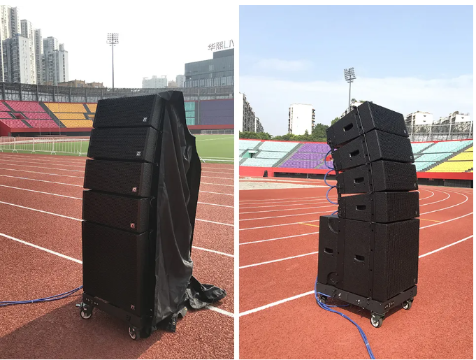 其中,HI- ZONE體育場是集各類賽事、文藝演出、健身娛樂為一體的室外體育場,場內建有400米標準田徑場,四周建有看臺(22個看區)和主席臺,設有觀眾座席35000座。HI- ZONE體育場選用了EV"RF"—VK208線陣列系統為主擴聲,VK18B超低頻揚聲器、以及周邊設備等產品。