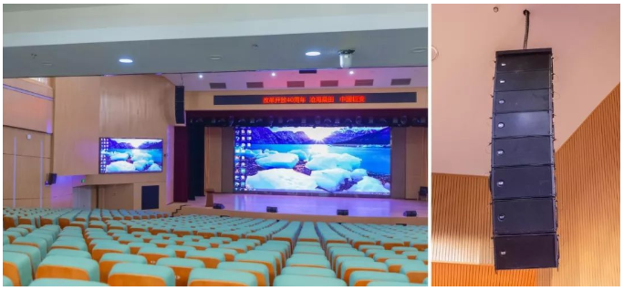 其中最大禮堂面積1000㎡左右,分兩層,池座800多座位,樓座400座位,是該校會議、文藝演出等活動的重要場地。音響系統更是達到專業水準。當然,這得益于RCF的加入!