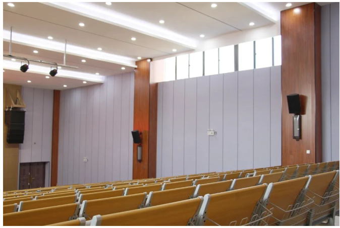 然后,由4只AT-10作為補聲音箱,壁掛在觀眾區兩邊墻面,每邊兩只,使得整個報告廳的聲場更加均勻,也使得語言清晰度進一步提升。