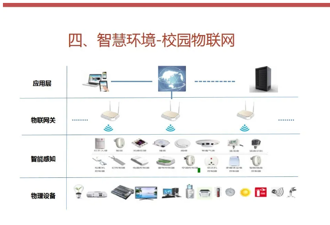 一套完整的智慧校園解決方案,不僅僅是校園傳統的智能化弱電系統建設,還包括智慧校園能為校園管理者、教師、學生、家長等各類角色提供服務。