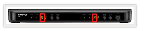 2、打開第一臺 發射機 的電源,并將組和頻道更改為與 接收機 匹配。