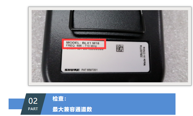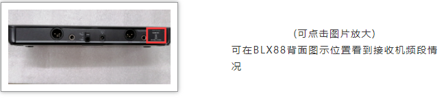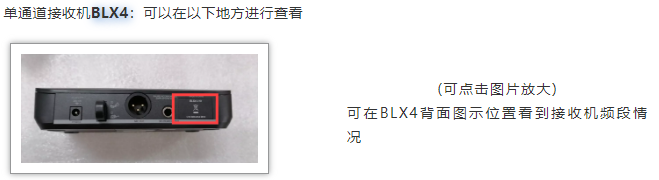 單通道接收機BLX4R,頻段信息可以在面板上看到,標識位于右上角,如圖所示