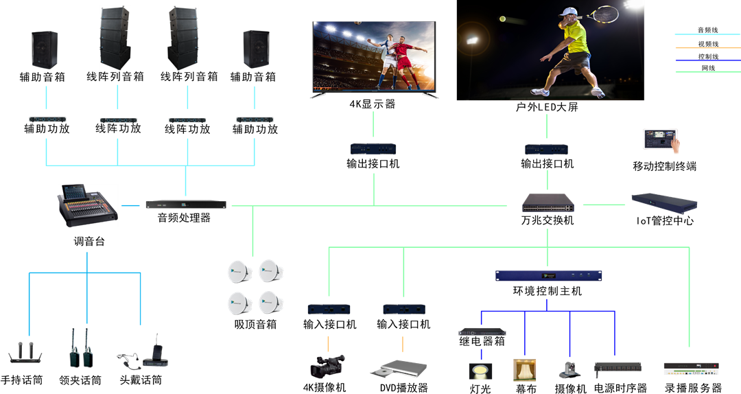 多功能應用:豐富的音響類型可保證體育館的演出、比賽等各種需求
