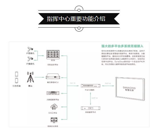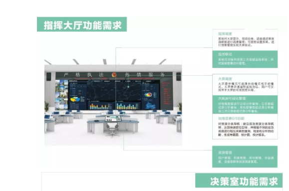 綜合指揮中心是一個集預案、視頻、圖片、語音、地理位置等信息為一體,以信息網(wǎng)絡為基礎,各系統(tǒng)有機互動為特點的城市信息化基礎設施。通過集成的視頻監(jiān)控系統(tǒng)、GIS信息系統(tǒng)、網(wǎng)絡通訊系統(tǒng)和應急聯(lián)動系統(tǒng)將公安、消防、衛(wèi)生、交通等應急指揮與調(diào)度集成在一個管理體系中,通過共享指揮平臺和信息平臺,實現(xiàn)集中接警、及時研判、快速響應、統(tǒng)一指揮和聯(lián)合行動。