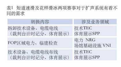 • 冬奧會(huì)期間,短道速滑及花樣滑冰兩項(xiàng)賽事對(duì)于擴(kuò)聲系統(tǒng)有著不同的需求,如表1所示,并且轉(zhuǎn)換時(shí)間短,只有半天的時(shí)間。