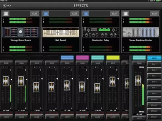 MR18內置了和M32一樣的效果器處理引擎。效果器機架提供了4對立體聲處理通道,可選擇包括延時、混響、動態處理和GEQ等,并且不需要增加任何額外的硬件。