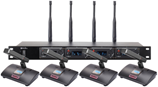 產品特點:1.系統符合GBT15381-94與GB50799-2012國家標準; 2.采用UHF四通道多頻道設計,運用高精度鎖相環頻率合成PLL技術,傳輸更穩定; 3.★具備540-590MHz,640-690MHz,740-790MHz,807-857MHz四個通道模塊頻率范圍選擇; 4.★采用27-50MHz的頻率帶寬,以250KHz頻道間隔,提供800個頻道選擇,輕松避開各類干擾;