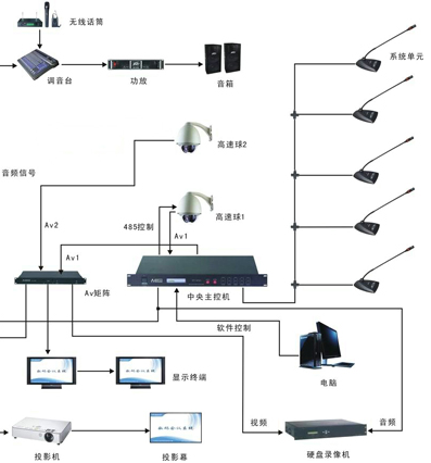 中央控制系統(tǒng)集中了燈光、機(jī)械、投影及視音頻控制手段于一體,為使用者提供簡(jiǎn)單、直接的控制方案,令使用者能方便地掌握整個(gè)空間環(huán)境音響設(shè)備的狀態(tài)及功能。本系統(tǒng)可對(duì)會(huì)議室內(nèi)各種音視頻設(shè)備及燈光、電動(dòng)窗簾、電動(dòng)投影幕、電動(dòng)升降吊架等設(shè)備采用集中控制方式,以方便操作和使用。包括數(shù)字會(huì)議發(fā)言、討論設(shè)備開啟、關(guān)閉;攝像球的轉(zhuǎn)動(dòng)、鏡頭控制;會(huì)議廳音響系統(tǒng)的開啟、關(guān)閉、音量調(diào)節(jié);會(huì)議廳投影機(jī)、液晶顯示器的開啟、關(guān)閉;視頻矩陣的切換、選擇;會(huì)議廳照明燈光的明暗調(diào)整;液晶顯示器升降控制等。