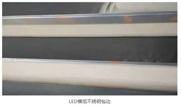 裝模組之前要用不銹鋼包邊,這僅僅是為了好看,也是安裝單位要求的,專門找來了做不銹鋼的師傅來量了尺寸,估算了下他量完鋼結(jié)構(gòu)后加大了5mm吧,為方便能好安裝又能卡死不銹鋼包邊。這里因為屏幕尺寸不大,我們提前安裝的不銹鋼包邊,有時也可以在屏幕安裝完后再安裝不銹鋼包邊,但是要注意的就是底部第一排水平一定要做好。