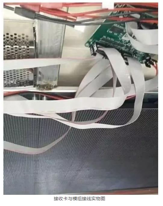 從配電室到LED顯示屏配電柜的電纜在安裝屏幕之前就必須布置好,電源接好后裝控制卡,控制卡這里用的是同步接收卡。整個電源和控制卡的布置,LED顯示屏出廠都是有《電源及系統(tǒng)布線圖》的,只要嚴(yán)格參照圖紙走線就不會出錯。一般工程師自己根據(jù)電源和卡的數(shù)量也可以估算出走線方式。
