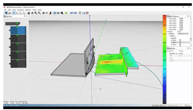 值得一提的是,這次春晚的舞臺是非常干凈的,無論是模擬預測,還是實地測量,都顯示出主擴系統(tǒng)對舞臺是幾乎沒有干擾的,聲壓級小且直達聲少,并且最終的實際聽感,主擴系統(tǒng)對舞臺的不良串音是極其微小的。