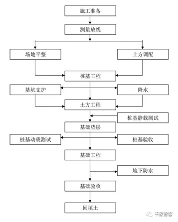 土建基礎工程主要工藝流程:
