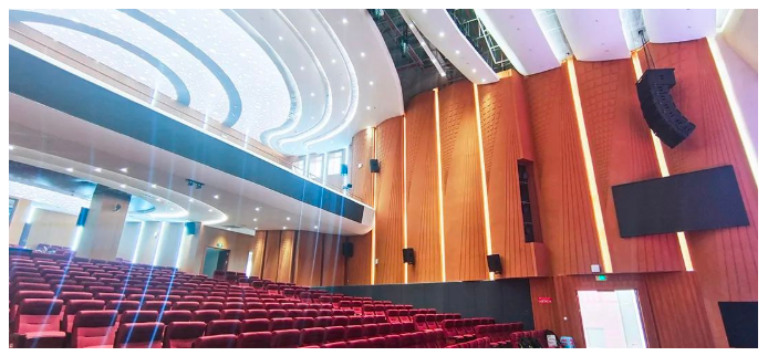 根據(jù)項目需求結(jié)合使用場地勘測情況,設(shè)計團隊最終選用:擁有90年研發(fā)設(shè)計與生產(chǎn)經(jīng)驗的英國著名音響品牌—Mission的音響設(shè)備作為本次項目的主擴音頻系統(tǒng),選用擁有45年研發(fā)設(shè)計與生產(chǎn)經(jīng)驗的英國品牌Mission作為本次擴聲音頻處理系統(tǒng)。 主擴聲系統(tǒng)采用左右兩聲道擴聲設(shè)計形式。選用Mission的WLA-210X線陣音箱,搭配WLA-210XSUB線陣次低頻音箱,懸掛于舞臺兩側(cè),直達覆蓋觀眾區(qū),主要負(fù)責(zé)音樂信號的重放、語言類及樂器信號的擴聲,能最大程度減少多余混響能量的影響,保證活動時聽眾都能接收到均勻的聲能。 采用WLA-218B超低音箱,確保在演出模式下提供良好的低頻動態(tài),還原演出時震撼的音樂效果。 拉聲像音箱采用了WZ-1596 15"全頻音箱,起到拉聲像作用,覆蓋前場觀眾席區(qū)域。臺唇音箱采用了Programma105全頻音箱,頻率響應(yīng)在整個音域范圍內(nèi)平滑自然,凸顯出中性的、未染色的聲音本質(zhì),可彌補觀眾席前區(qū)中心位置主擴聲覆蓋不到的缺憾。 舞臺流動返聽采用了DM12全頻音箱,直接作為歌手及主持的監(jiān)聽音箱。