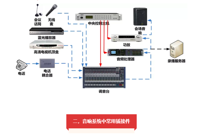 由于大部分用在擴(kuò)聲工程上的音源設(shè)備,本身輸出端采用非平衡式輸出,比如蓮花式輸入插座或大二芯插座,所以非平衡式連接只適合在距離較近的情況下用于音源設(shè)備與調(diào)音臺(tái)之間的連接。