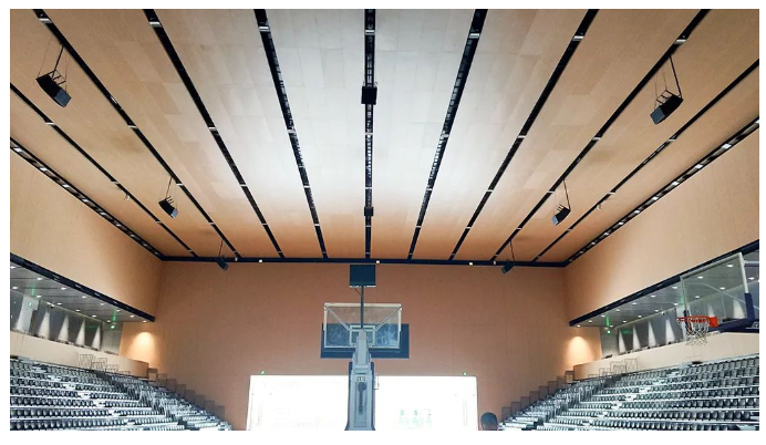 其中一層多功能綜合館,面積超過(guò)1200平方米,包含2000個(gè)坐席和3個(gè)籃球全場(chǎng),可以承辦中小型賽事和活動(dòng)。在擴(kuò)聲系統(tǒng)的選擇上,面臨著場(chǎng)館層面積大,層高深,混響時(shí)間長(zhǎng),設(shè)備選擇需要滿足大聲壓級(jí)、高靈敏度、適合長(zhǎng)距離投射和體積輕巧能減少高空懸掛的負(fù)荷,確保滿足極佳的指向性控制,保證音色的一致性,具備優(yōu)異的安全性和穩(wěn)定性。