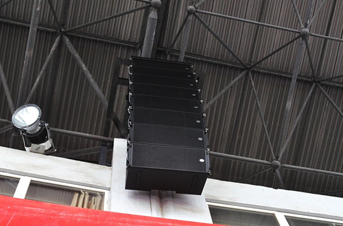 采用WLA-15MF防水音箱以每側4只分布的形式安裝于場館左、右兩側,采用6只分布于場館觀眾區中部區域,采用2只做為流動返聽安裝于場館,以確保聲音精準達到主擴聲系統覆蓋不到的觀眾區域,以彌補側聲場均勻度的不足。