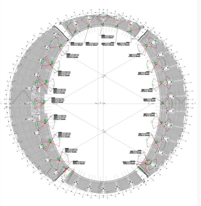 體育場固定擴聲系統(tǒng)采用分布式揚聲器布局,在場地內(nèi)東側(cè)、西側(cè)和北側(cè)的馬道下方,明裝吊掛了共21組由EAW MKD和QX系列防水版箱體組成的點聲源揚聲器組,對觀眾席以及場地區(qū)域進行均勻覆蓋。
