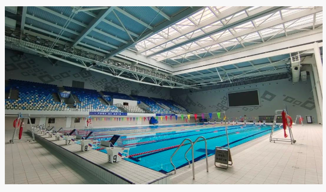 清遠奧體中心游泳館分為地下一層,地上三層,可容納2000人觀賽。游泳館比賽池上空采用大跨度可開合活動屋蓋,開合跨度寬達24米,能在5分鐘內(nèi)實現(xiàn)室內(nèi)與露天泳池的切換,是一種新型的可變形態(tài)建筑。