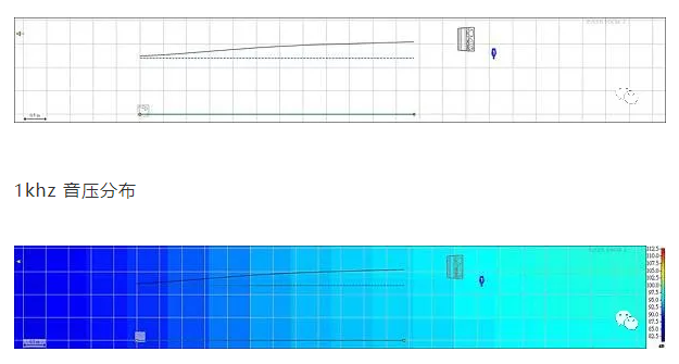 音箱就這樣與墻面平行打出去~1khz 的音壓分布